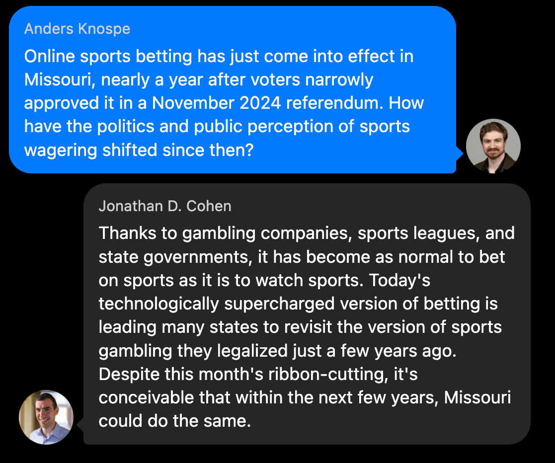 Occasionally, we’ll share some DMs from friends. This week, we hear from Jonathan D. Cohen, author of Losing Big: America’s Reckless Bet on Sports Gambling.